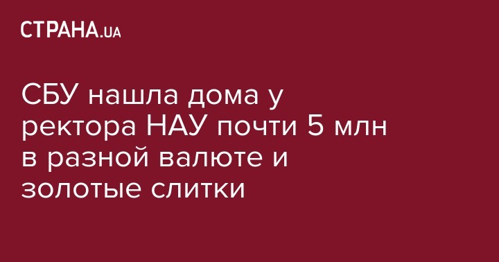 СБУ нашла дома у ректора НАУ почти 5 млн в разной валюте и золотые слитки