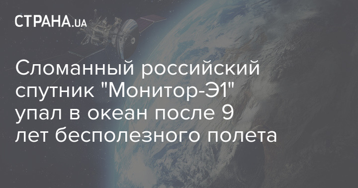 Сломанный российский спутник "Монитор-Э1" упал в океан после 9 лет бесполезного полета