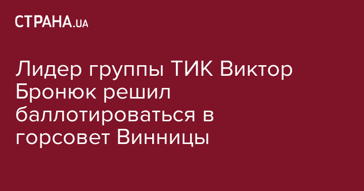 Лидер украинской группы "ТИК" Виктор Бронюк намерен баллотироваться в депутаты Винницкого городского совета. Он будет первым номером в списке "Партии Винничан".