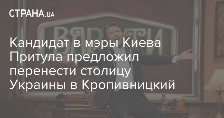 Украинский шоумен, а также кандидат в столичные мэры от "Голоса" Сергей Притула предложил перенести столицу Украины в Кропивницкий. Такое заявление он сделал во время ток-шоу в эфире одного из телеканалов.