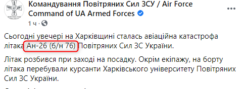 При этом губернатор Харьковской области уже обнародовал предварительные данные об отказе у самолета левого мотора.