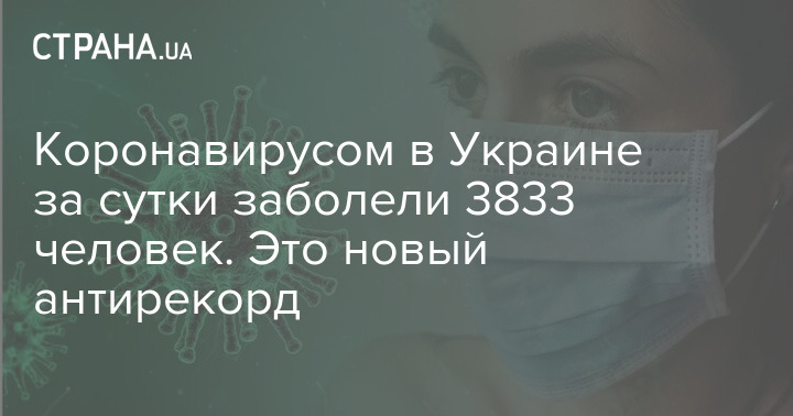Коронавирусом в Украине за сутки заболели 3833 человек. Это новый антирекорд