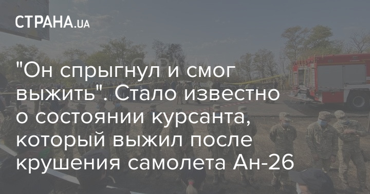 Курсанту Вячеславу Злочевскому, который находился на борту рухнувшего вчера военного самолета Ан-26, удалось выжить, так как он успел вовремя выпрыгнуть.