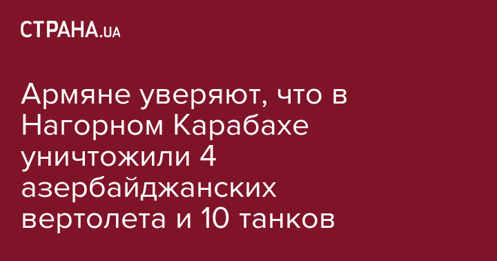 Военные Армении заявили, что в ходе сегодняшнего, 27 сентября, обострения конфликта в Нагорном Карабахе Азербайджан потерял четыре вертолета, десять танков и БМП.
