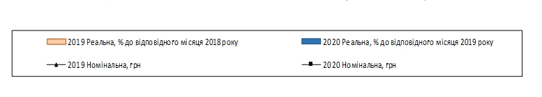 "Средняя номинальная заработная плата штатного работника предприятий, учреждений и организаций в августе 2020 составила 11 446 грн, что в 2,4 раза выше уровня минимальной заработной платы (4 723 грн). По сравнению с июлем размер средней номинальной заработной платы уменьшился на 3,0 %, а за последние 12 месяцев (относительно августа 2019) увеличился на 8,6% ", - сообщили в Госстате.