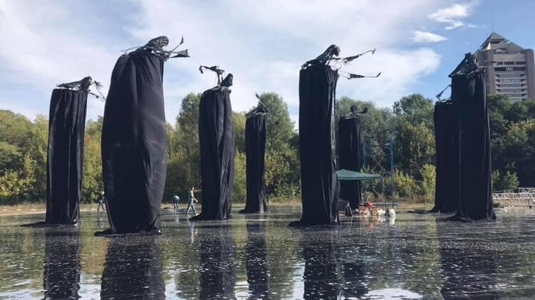 Создатели скульптур - украинский театральный режиссер Влад Троицкий и российский коллега Илья Хржановский - режиссер скандального фильма "Дау", по поводу которого в Украине заведено уголовное дело.
