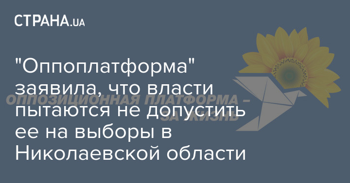 Партия "Оппозиционная платформа - за жизнь" заявила, что власти пытаются снять "ОПЗЖ" с выборов в Николаевский областной и городской советы через манипуляциями в местных избиркомах.
