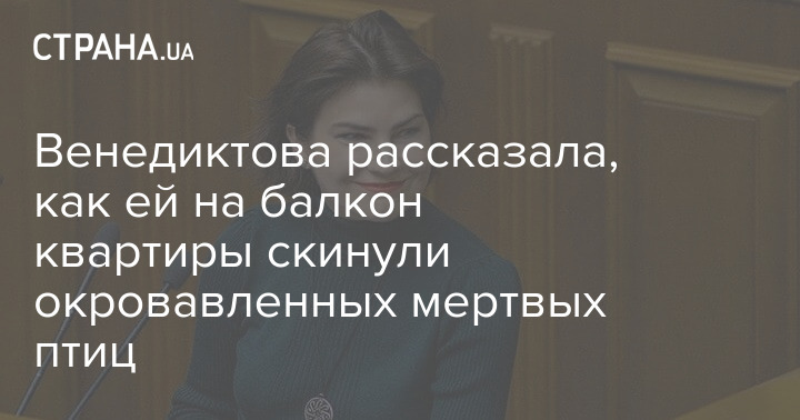 Венедиктова рассказала, как ей на балкон квартиры скинули окровавленных мертвых птиц