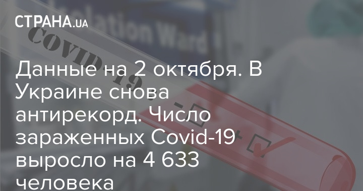 Данные на 2 октября. В Украине снова антирекорд. Число зараженных Covid-19 выросло на 4 633 человека