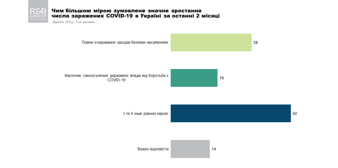 "В сентябре 2020 года большинство украинцев (57%) в целом не доверяли официальной статистике о количестве зараженных Covid-19: 34% потому что, по их мнению, эти данные преувеличивают число больных, а 23% - потому что умаляют", - сообщается в отчете по итогам опроса.