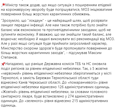 Степанов рассказал, при каком условии Украина вернется к жесткому карантину. Скриншот: facebook/ moz.ukr