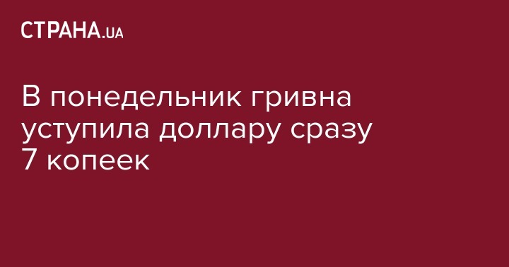 В понедельник гривна уступила доллару сразу 7 копеек
