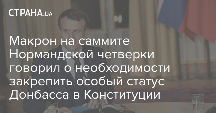 Президент Франции Эммануэль Макрон 9 декабря прошлого года, в ходе пресс-конференции в Париже по итогам Нормандского саммита, заявил, что украинские власти должны закрепить в Конституции особый статус Донбасса.