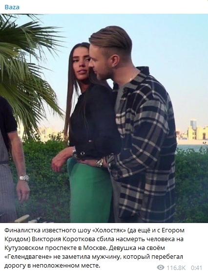 В ночь с 5 на 6 октября 25-летняя финалистка шоу "Холостяк" Виктория Короткова сбила насмерть человека на Кутузовском проспекте в Москве.