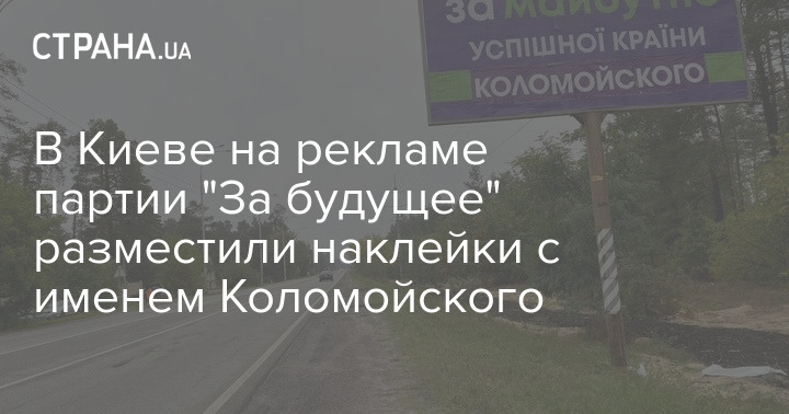 Так, измененная реклама партии "За будущее" была замечена вдоль Парковой дороги и на Столичном шоссе в Киеве. На придорожных билбордах размещены наклейки с именем Коломойского.