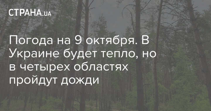 Сегодня, 9 октября, в Украине ожидается преимущественно сухая и переменно облачная погода. Небольшие дожди возможны лишь местами на западе страны, а также в Винницкой, Житомирской и Черниговской областях. Ветер ожидается переменных направлений, слабый.