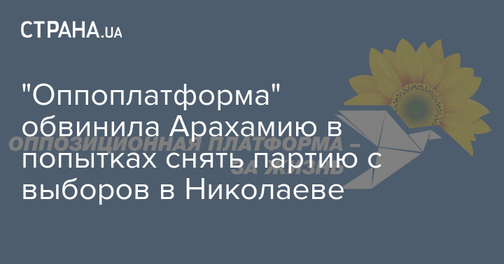 Партия "Оппозиционная платформа - За жизнь", которая в четверг обращалась к Владимиру Зеленскому по поводу попыток "слуг народа" сорвать участие политсилы в выборах в Николаеве, обвинила главу фракции партии президента Давида Арахамию, что он за этим стоит.