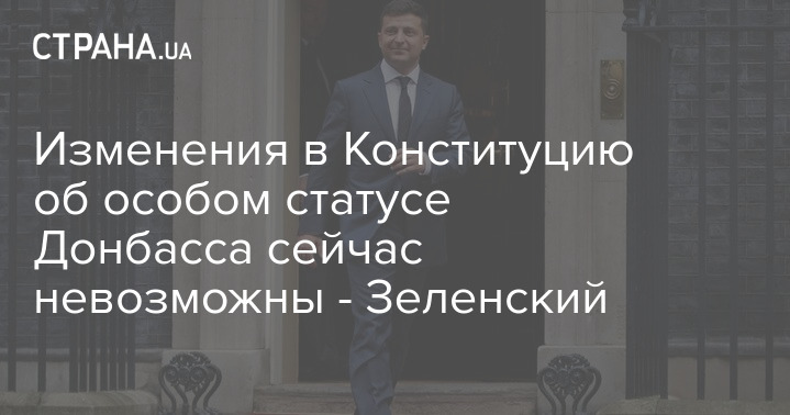 Президент Украины Владимир Зеленский заявил, что изменения в Конституцию Украины об "особом статусе" отдельных районов Донецкой и Луганской областей, которые предлагает Россия, на сегодняшний день не возможны, а передавать контроль над границей с РФ на Донбассе Украине после выборов на оккупированном Донбассе - неправильно.