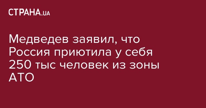 Медведев заявил, что Россия приютила у себя 250 тыс человек из зоны АТО