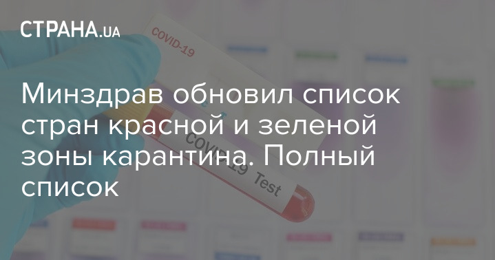 Минздрав Украины обновил список стран красной и зеленой зон, учитывая количество активных случаев коронавируса на 100 тысяч населения. Документ опубликован на сайте ведомства.