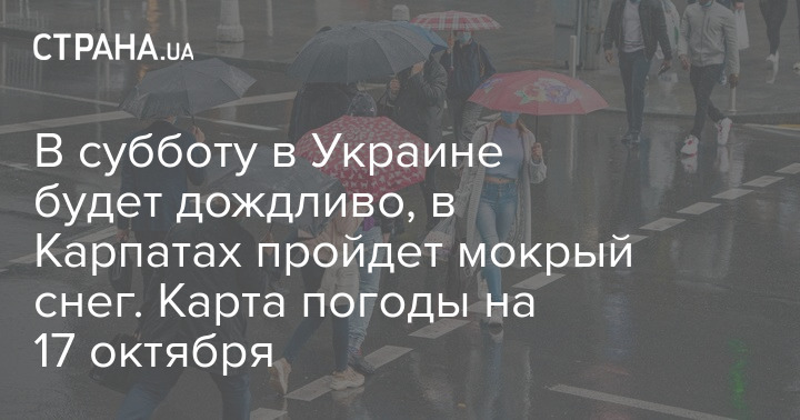 В субботу, 17 октября, в Украине ожидается ветреная и дождливая погода. В Карпатах возможен мокрый снег.