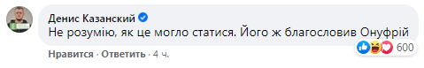 "Не понимаю, как это могло произойти. Его же благословил Онуфрий", - сыронизировал представитель Украины в Трехсторонней контактной группе Денис Казанский.