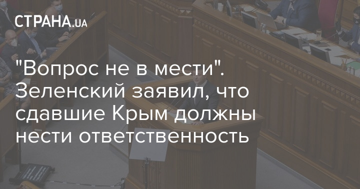 "Те, кто без боя отдал Крым, должны нести ответственность. Вопрос не в мести, а в справедливости", - заявил Владимир Зеленский, обращаясь к народным депутатам в Раде.