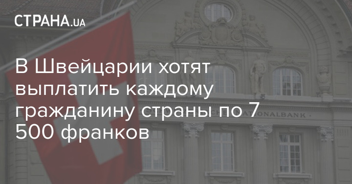 По 7 500 швейцарских франков (около 7 000 долларов) может выплатить правительство Швейцарии каждому гражданину страны, включая детей, для того, чтобы снизить стоимость национальной валюты.