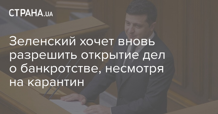 Президент Украины Владимир Зеленский предложил парламенту отменить мораторий на открытие производств по делам о банкротстве по заявлениям кредиторов, который был введен на период карантина и 90 дней после его окончания.