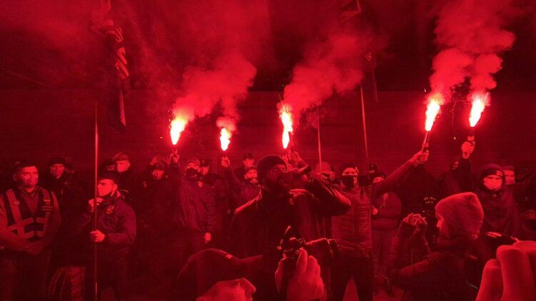 Националисты зажгли файеры у резиденции Зеленского. Фото: "Страна"
