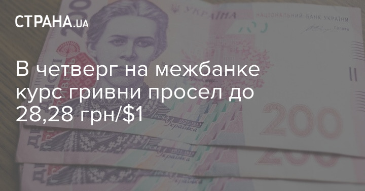 В четверг на межбанке курс гривни просел до 28,28 грн/$1