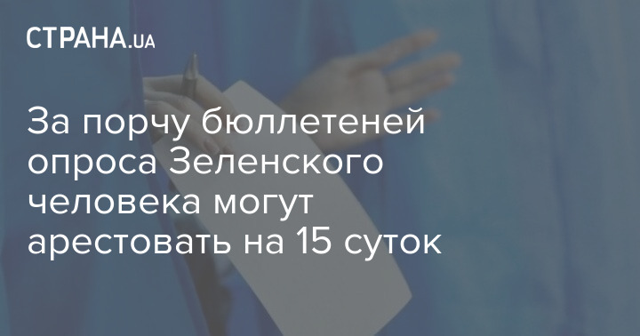 Если правоохранители зафиксируют порчу бюллетеней всеукраинского опроса, инициированного президентом Владимиром Зеленским, это может быть расценено как мелкое хулиганство. За это правонарушение предусмотрены разные виды наказаний, в том числе и арест на 15 суток.