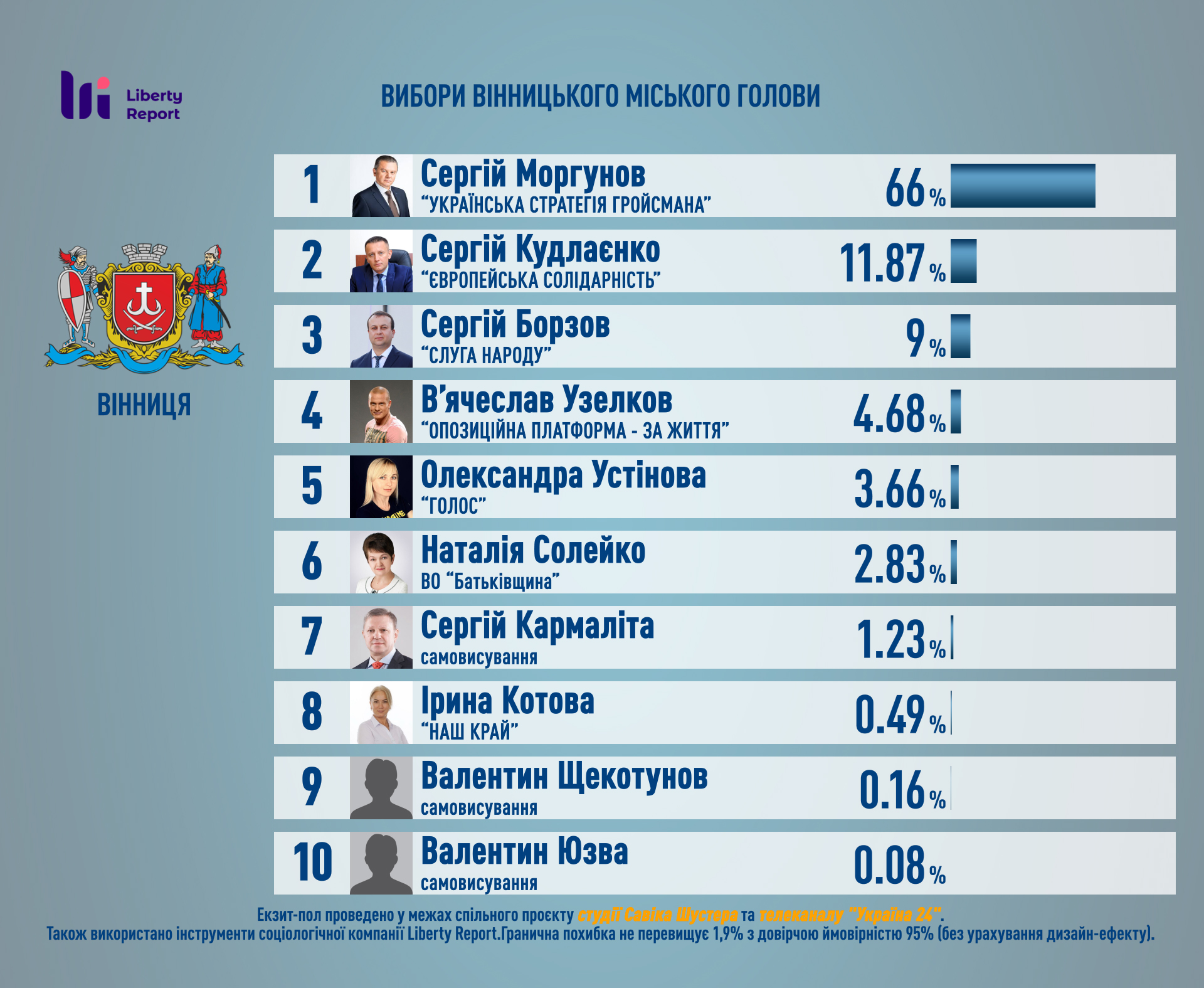 22:11 Винница. Экзитпол выборов мэра Студии Савика Шустера и компании Liberty Report.