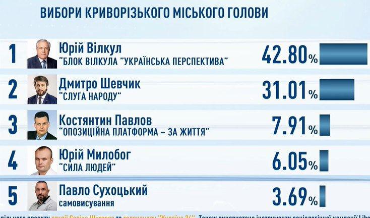 21:25 Кривой Рог - второй тур между мэром Юрием Вилкулом и кандидатом от Слуги народа Шевчиком. В родном городе президента "Слуга народа" оказалась на первом месте, а на втором - местный "Блок Вилкула", который отобрал голоса у ОПЗЖ.