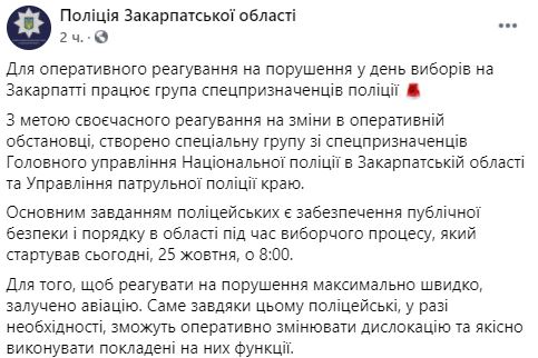 "Полицейские открыли 15 уголовных производств по нарушениям избирательного законодательства. Составлены 6 административных протоколов. В Краматорске в полицию обратилась член избирательной комиссии с сообщением о том, что ей угрожал неизвестный. Полицейские открыли уголовное производство по ч.1 ст. 129 Уголовного кодекса "Угроза убийством", - указано в сообщении.