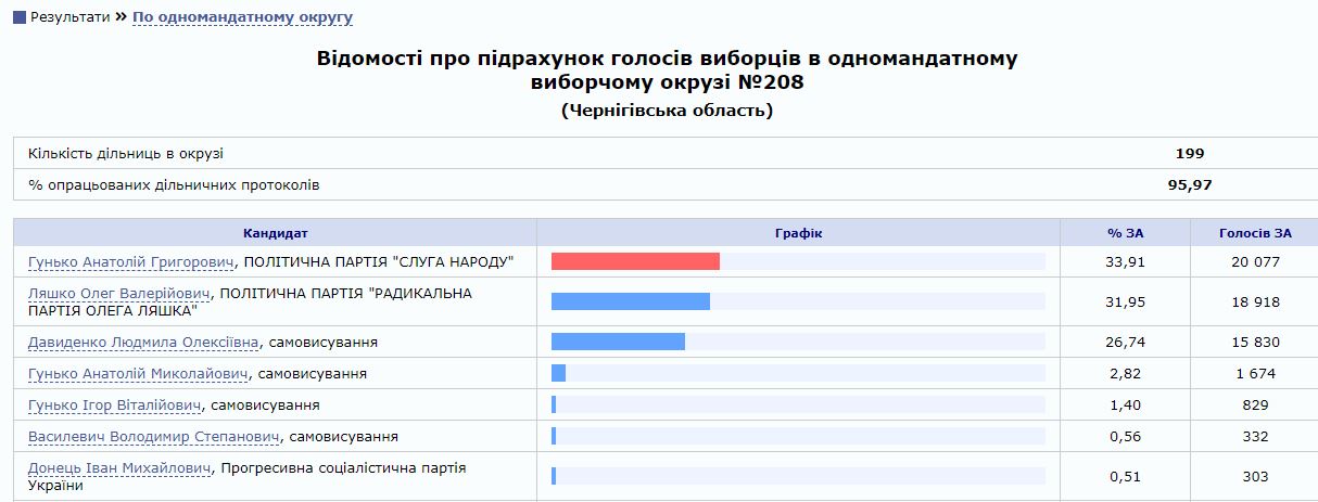 08:49  "Слуга народа" Гунько снова опережает Ляшко на 208 округе Черниговщины с разницей в один процент. Обработано почти 79% бюллетеней.