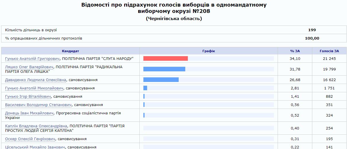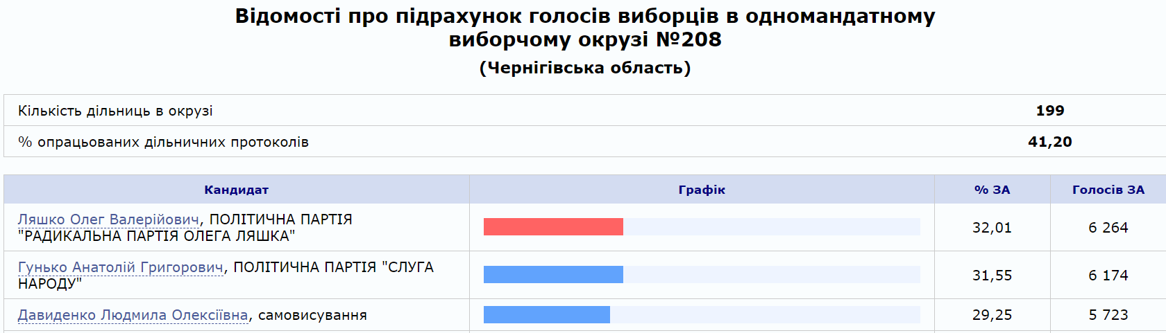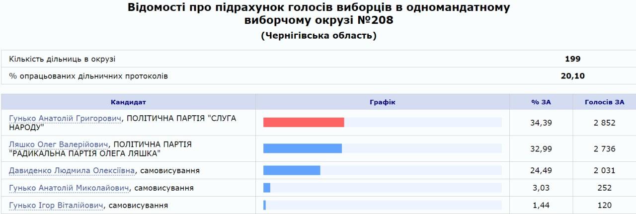 11:38  По Чернигову подсчитали 30% на довыборах в Раду. Снова лидирует "Слуга народа" Анатолий Гунько, а Олег Ляшко на втором месте.