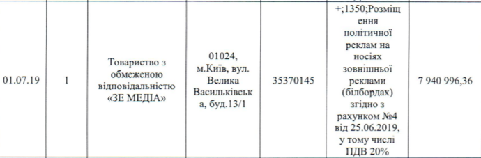 Уже из названия следовало, что компания имеет отношение к Владимиру Зеленскому. И связь прослеживалась очевидная: летом 2019 года "Зе Медиа" заказывала и оплачивала борды партии "Слуга народа" на миллионы гривен.