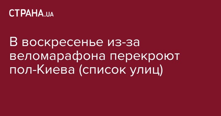В воскресенье, 4 сентября, на время проведения международных соревнований по велоспорту "Киевская сотка" будет временно ограничено движение транспорта по маршруту проезда веломарафона. Об изменениях сообщает пресс-служба Киевской городской государственной администрации (КГГА).