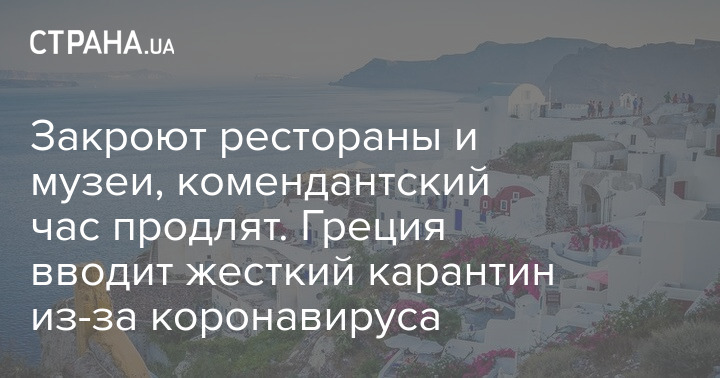 "Греция расширит ночной комендантский час на передвижение и закроет рестораны и бары в самых густонаселенных районах страны на один месяц, чтобы сдержать всплеск заболеваемости COVID-19", - рассказал премьер-министр Кириакос Мицотакис.