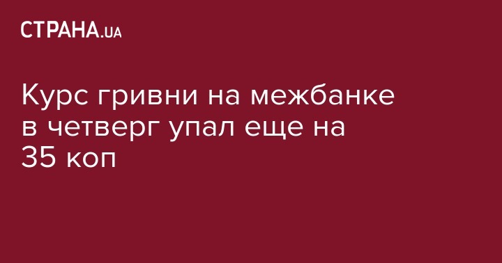 Курс гривни на межбанковском валютном рынке в четверг снизился до 26,65 грн/$1 с 26,3 грн/$1 в предыдущий рабочий день, сообщили агентству "Интерфакс-Украина" дилеры коммерческих банков.