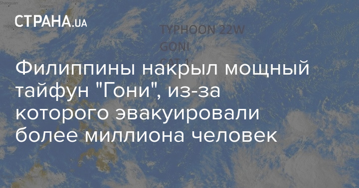 Филиппины накрыл мощный тайфун "Гони", из-за которого эвакуировали более миллиона человек