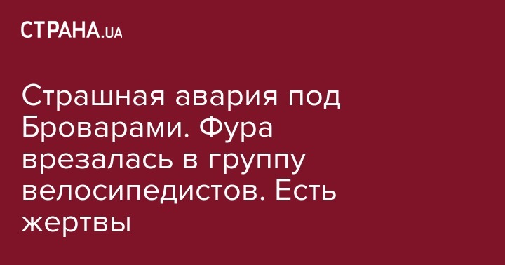 Группу велосипедистов Броварского высшего училища физкультуры сбила фура вблизи Броваров (Киевская обл.), один спортсмен погиб, еще трое – в реанимации, сообщил министр молодежи и спорта Игорь Жданов в Fаcebook.