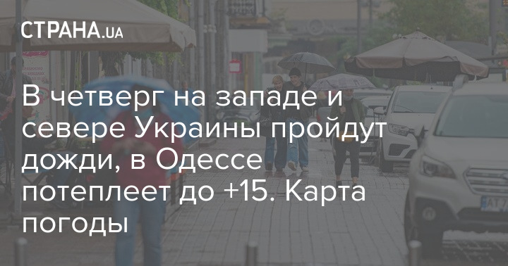 В четверг на западе и севере Украины пройдут дожди, в Одессе потеплеет до +15. Карта погоды