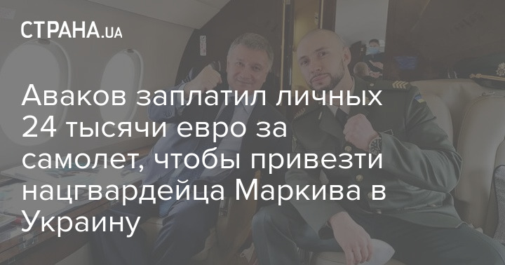Глава Министерства внутренних дел (МВД) Арсен Аваков заплатил из своих личных денег 23 879 евро за самолёт Falcon, которым освобожденного из под стражи нацгвардейца Виталия Маркива вернули из Италии.