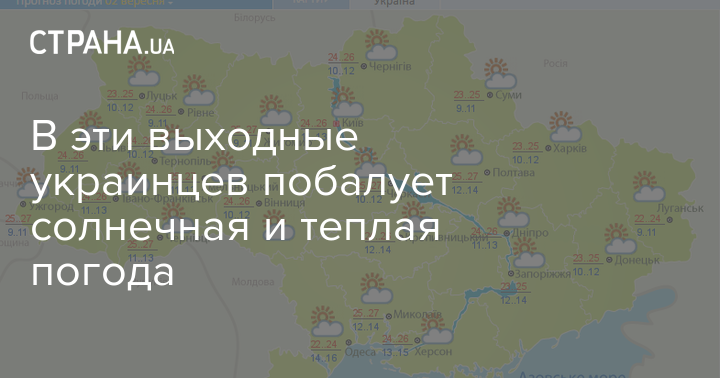 Украинцев ждет теплый осенний уик-энд со 2 по 4 сентября. По всей территории Украины в ближайшие сутки, а также в субботу и воскресенье продолжает поступать теплый воздух с Западной Европы, погоду по-прежнему будет определять поле повышенного атмосферного давления. об этом сообщает Укргидрометцентр.