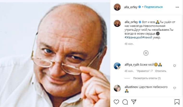 Российская эстрадная певица Алла Пугачева с печалью отреагировала на новость о смерти своего друга - писателя и сатирика Михаила Жванецкого.