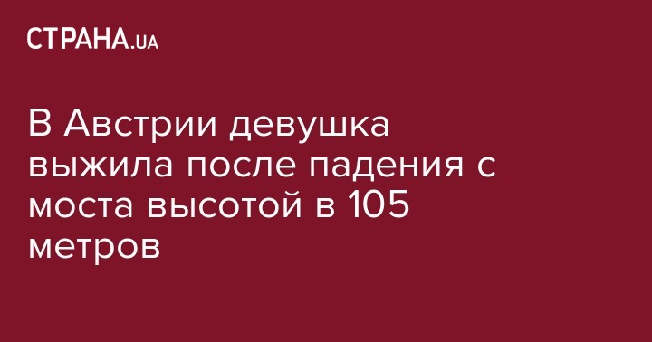 19-летняя девушка выжила после падения со второго по высоте моста в Австрии, высота которого составляет 105 метров, получив лишь легкие ранения. Об этом сообщает The Local.