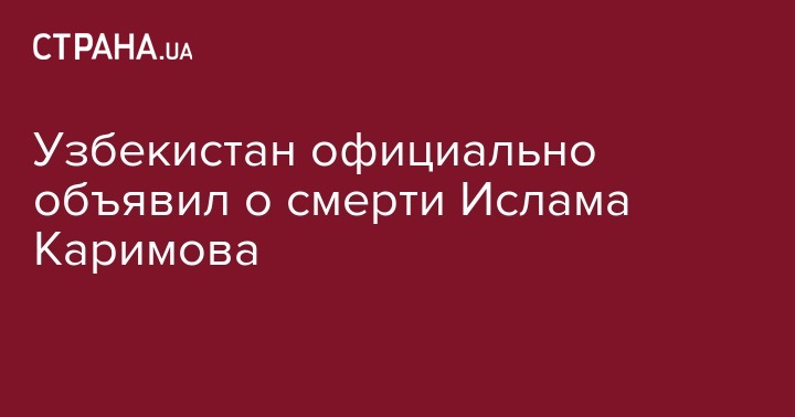 Узбекистан официально объявил о смерти президента страны Ислама Каримова. Об этом сообщает "Интерфакс".