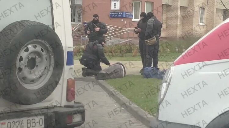 Правоохранители оказывают помощь пострадавшему на протестах в Минске. Фото: Telegram/NEXTA
